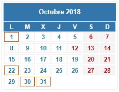 CALENDARIO DEL CONTRIBUYENTE. OCTUBRE 2018 No hay comentarios | FISCAL/ADMINISTRATIVO, INFORMACIÓN DE INTERÉS Recordatorio mensual de las principales obligaciones tributarias estatales. Fechas clave: El día 1, 22, 30 y 31 de octubre. Read More »