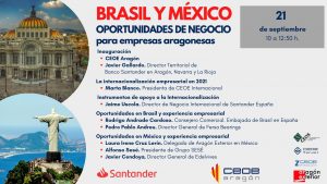 CEOE Aragón y Banco Santander organizan una jornada para conocer las oportunidades de negocio e inversión en Brasil y México, las dos mayores naciones latinoamericanas en términos de economía, población, recursos y desarrollo industrial.